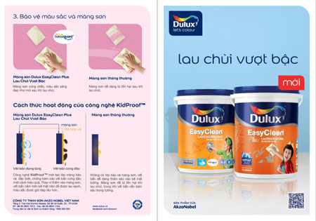 Sơn Dulux trong nhà Lau Chùi Hiệu Quả với công nghệ Protect-Mask bảo vệ màng sơn, có khả năng chịu chùi rửa gấp 10 lần so với sơn thông thường giúp giữ tường nhà sạch đẹp như mới.