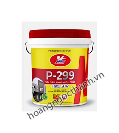 Mô tả: Sơn bóng P-299 là loại sơn chống thấm hệ Methyl Methacrylat dùng cho ngoài trời, cho độ đàn hồi cao, giảm thiểu vết nứt của sơn. P-299 đã hoàn toàn nhiệt đới hóa, rất phù hợp với khí hậu nóng ẩm của Việt Nam. P-299 có khả năng chống thấm tuyệt đối cho tường, chống rêu mốc cho mái ngói.